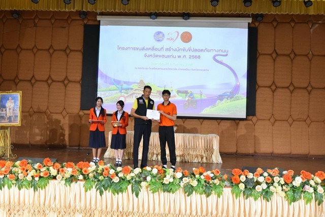ขนส่งจังหวัดขอนแก่น กล่าวถึงโครงการขนส่งเคลื่อนที่ สร้างนักขับขี่ปลอดภัยทางถนน จังหวัดขอนแก่น พ.ศ. 2568 มีวัตถุประสงค์เพื่อปลูกฝังและสร้างความตระหนักรู้เรื่องความปลอดภัยใน การขับขี่รถจักรยานยนต์ให้แก่เด็กและเยาวชน ให้มีความรู ้ ทักษะ และความชำนาญใน การขับรถจักรยานยนต์อย่างถูกต้องตามกฎหมาย ตลอดจนสร้างวัฒนธรรมความปลอดภัย ในการใช้รถใช้ถนนอย่างยั่งยืน กลุ่มเป้าหมายเป็นนักเรียนระดับชั้นมัธยมศึกษาที่มีอายุ ตั้งแต่ 15 ขึ้นไป โดยได้เชิญวิทยากรมาให้ความรู้เรื่องเกี่ยวกับกฎหมายที่เกี่ยวข้อง/ ข้อปฏิบัติ เมื่อเกิดอุบัติเหตุฉุกเฉินและการปฐมพยาบาลเบื้องต้นกรณีที่เกิดอุบัติเหตุ/ การขับขี่อย่าง ปลอดภัย ตลอดจนการสร้างจิตสำนึกและมารยาทในการขับรถ ซึ่งได้รับความอนุเคราะห์ วิทยากรจากกองบังคับการสืบสวนสอบสวนตำรวจภูธรภาค 4, โรงพยาบาลขอนแก่น, บริษัท พรพิวัฒน์ยานยนต์ ขอนแก่น จำกัด และฝ่ายใบอนุญาตขับรถ สำนักงานขนส่ง จังหวัดขอนแก่น การจัดอบรมในครั้งนี้มีนักเรียนเยาวชนเข้ารับการอบรม จำนวนทั้งสิ้น 330 คน
