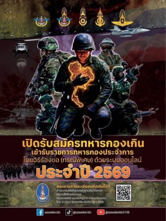 “การรับสมัครทหารกองเกินเข้ารับราชการทหารกองประจำการ โดยวิธีร้องขอ (กรณีพิเศษ) ด้วยระบบออนไลน์ ประจำปี 2569”