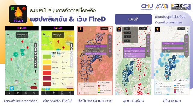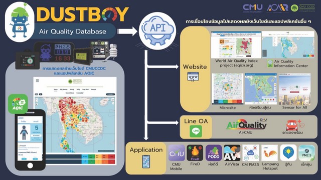 สำหรับด้านการรับมือและแก้ไขปัญหามลพิษทางอากาศ PM 2.5 อย่างยั่งยืน ได้สร้างสรรค์นวัตกรรมตรวจวัดค่าฝุ่น PM2.5 เพื่อให้ประชาชนได้เข้าถึงได้ง่าย เช่น ระบบติดตามค่าฝุ่น PM2.5 และคุณภาพอากาศประเทศไทย สำหรับประชาชน ผ่าน Line Official Account: Air Quality by CMU (@aircmu), Dustboy เครื่องวัดปริมาณฝุ่นละอองขนาดเล็กในอากาศด้วยระบบเซนเซอร์ รายงานสถานการณ์ฝุ่นแบบ Real Time ที่ติดตั้งทั่วประเทศ, FireD ระบบสนับสนุนการตัดสินใจในการบริหารจัดการเชื้อเพลิงชีวมวล นอกจากนี้ยังมีนวัตกรรมป้องกันตนเองจาก PM2.5  อย่างห้องปลอดฝุ่นและมุ้งสู้ฝุ่น ที่ใช้หลักการแรงดันอากาศความดันบวก นำอากาศที่ดีผ่านการกรองเข้ามาและปิดกั้นอากาศที่ไม่ดี ซึ่งมีคณะทำงานด้านวิชาการเพื่อสนับสนุนการแก้ไขปัญหาหมอกควันภาคเหนือ มช. เป็นหน่วยงานหลัก