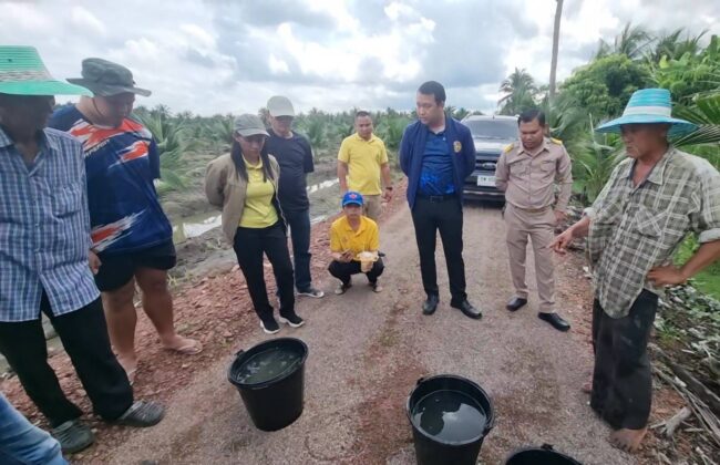 นายศักดิ์ชัย ซึ่งทำสวนมะพร้าวและฝรั่งในพื้นที่ ได้นำคนงานทอดแหจับปลาในร่องสวนมาทดลองปล่อยลงในกระป๋องน้ำที่ตักมาจากคลองทั้งสองฝั่ง ผลการทดสอบยืนยันความผิดปกติอย่างชัดเจน เมื่อนำปลาไปปล่อยในน้ำจากคลองฝั่งซ้าย ปลาลอยหัวและกระโดดหนีตายในเวลาไม่ถึง 1 นาที แต่เมื่อนำไปปล่อยในน้ำจากฝั่งขวา ปลากลับสามารถว่ายน้ำได้ตามปกติเจ้าของสวนย้ำว่า คลองทั้งสองฝั่งเดิมมีปลาชุกชุมและมีหลายสายพันธุ์ แต่ตั้งแต่เย็นวันที่ 14 กันยายนที่ผ่านมา เริ่มเห็นปลาลอยตายจำนวนมากในฝั่งซ้าย กระทั่งแทบไม่เหลือปลาอยู่ จึงเชื่อว่าน้ำอาจปนเปื้อนสารเคมีจากแหล่งภายนอก แม้คลองฝั่งซ้ายจะเป็นคลองที่ตนขุดขึ้นและปิดกั้นไม่ให้เชื่อมคลองสาธารณะ เป็นพื้นที่ส่วนบุคคล และยังไม่มีการเชื่อมต่อกับคลองสาธารณะด้านนอก จึงไม่ทราบว่าสาเหตุมาจากแหล่งใด