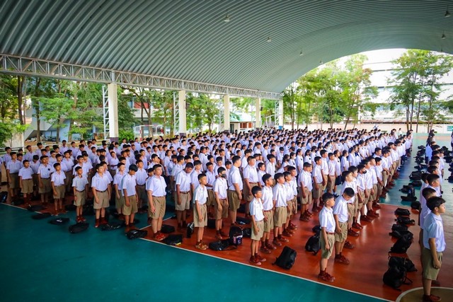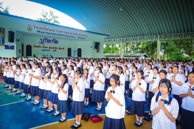 “ประเทศไทยรวมเลือดเนื้อชาติเชื้อไทย“ ทัพเรือภาคที่ 1 ร่วมร้องเพลงเคารพธงชาติไทยกับนักเรียนโรงเรียนมาบตาพุดพันพิทยาคาร เนื่องใน“วันธงชาติไทย” วันที่ 28 กันยายน