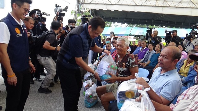 จากนั้นเดินทางไปยังศูนย์สภากาชาดไทยเวชพาหน์เฉลิมพระเกียรติ ตำบลบางจัก อำเภอวิเศษชัยชาญ จังหวัดอ่างทอง เพื่อฟังสถานการณ์น้ำท่วมในพื้นที่จังหวัดอ่างทอง โดยเฉพาะพื้นที่ตำบลบางจัก ประชาชนได้รับความเดือดร้อนแล้ว 433 ครัวเรือน หลังจากที่เขื่อนเจ้าพระยา ระบายน้ำที่ 2,200 ลบ.ม./วินาที และมอบถุงยังชีพให้ผู้ประสบภัยน้ำท่วม