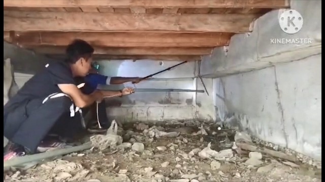 เมื่อเจ้าหน้าที่ฯไปถึงบ้านเลขที่ดังกล่าว ก็เข้าสำรวจที่บริเวณใต้ถุนบ้าน ก็พบงูจงอางตัวใหญ่ จึงรีบใช้อุปกรณ์ในการจับงูทันที ระหว่างการเข้าจับงูของเจ้าหน้าที่ฯเป็นไปด้วยความยากลำบากเนื่องจากต้องเข้าไปที่ใต้ถุนบ้าน ในการจับจึงยากขึ้น แต่เจ้าหน้าที่ก็ใช้ความสามารถจับงูจนได้ กว่าจะลากออกมาจากใต้ถุนได้ ต้องตื่นเต้นระวังงูจะฉกเอาหลายครั้ง