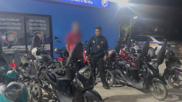 ตำรวจท่องเที่ยวเกาะพะงันรวบหนุ่มรัสเซีย กร่างแย่งอาชีพ เปิดธุรกิจให้เช่ารมอเตอร์ไซค์เถื่อน ยึดของกลาง มูลค่าครึ่งล้าน