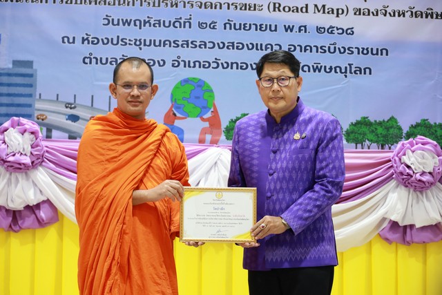 พิษณุโลก อบจ.พิษณุโลก ร่วมมอบเกียรติบัตรการประกวดหน่วยงานจัดการขยะต้นทาง สะอาด และใช้ประโยชน์จากขยะ ตามแผนในการขับเคลื่อปการบริหารจัดการขยะ (Road Map) ประจำปี 2568