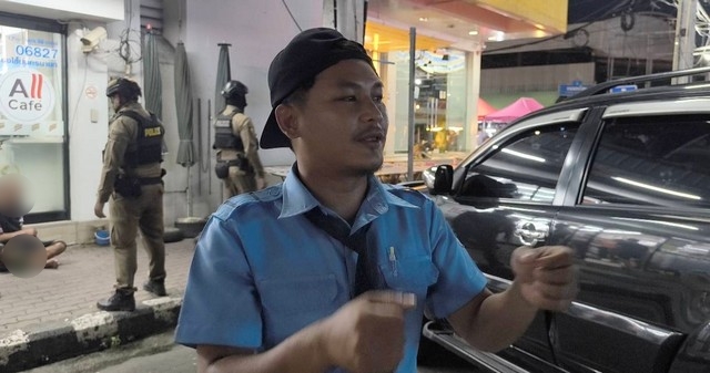 จากการให้สัมภาษณ์ของเจ้าหน้าที่รักษาความปลอดภัยธนาคาร ได้ให้สัมภาษณ์ว่า วันนี้เจ้าหน้าที่ธนาคารกำลังทำงานกันอยู่ด้านในธนาคาร และปิดประตูล็อคไว้ เนื่องจากใกล้สิ้นเดือน ได้มีชายมีอาการเมาเดินมาเขย่าประตูธนาคารเพื่อจะเข้าไปด้านในตนจึงได้มาไล่ให้ออกไปและโทรแจ้งเจ้าหน้าที่ตำรวจมาควบคุมตัวส่งสถานีตำรวจภูธรนครนายก