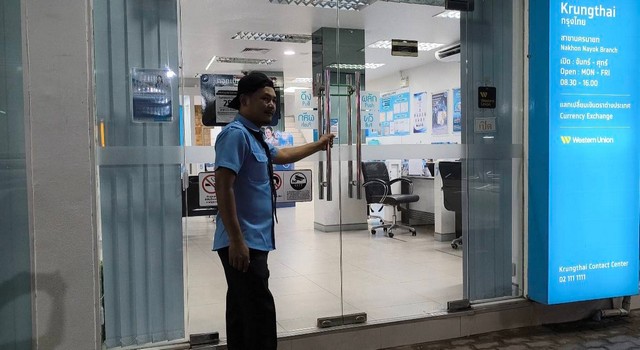 นครนายก – ชายเมาก่อกวนไปดึงประตูหน้าธนาคารที่ล็อคไว้เขย่าอย่างแรงในขณะเจ้าหน้าที่กำลังทำงานใกล้สิ้นเดือน