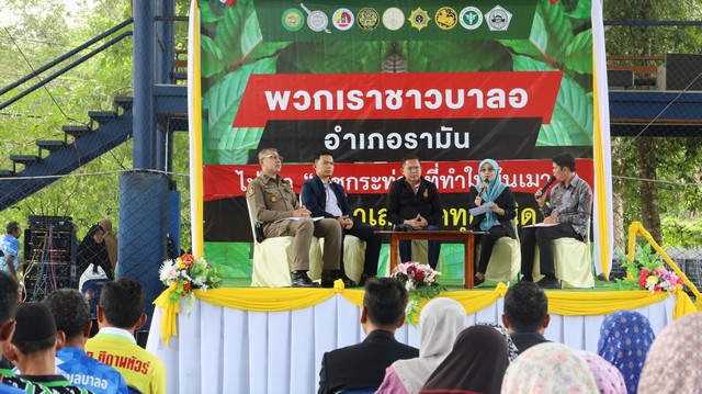 การเคลื่อนไหวภาคประชาชนในพื้นที่ 5 จังหวัดชายแดนภาคใต้กำลังร้อนระอุ! ล่าสุด ที่สนามหญ้าเทียมเทศบาลตำบลบาลอ อ.รามัน จ.ยะลา ประชาชนกว่า 500 ชีวิต ได้รวมพลังประกาศ ปฏิญานตน “ปฏิเสธกระท่อมเสรี” เพื่อส่งสัญญาณเรียกร้องให้รัฐบาลพิจารณา ทบทวนนโยบาย และเดินหน้า นำกระท่อมกลับเข้าบัญชียาเสพติดอีกครั้ง ตามที่เคยมีการผลักดันในวาระ “นโยบาย 120 วัน วาระพืชกระท่อม”