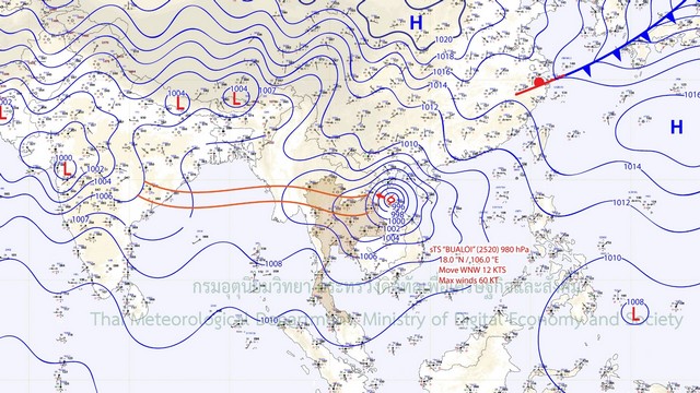 อนึ่ง เมื่อเวลา 01.00 น. ของวันนี้ (29 ก.ย. 68) พายุไต้ฝุ่น “บัวลอย” ได้เคลื่อนขึ้นฝั่งบริเวณประเทศเวียดนามตอนบน และได้อ่อนกำลังลงเป็น พายุโซนร้อนกำลังแรงแล้ว และจะเคลื่อนเข้าปกคลุมบริเวณประเทศลาวตอนบน หลังจากนั้นจะอ่อนกำลังลงตามลำดับ