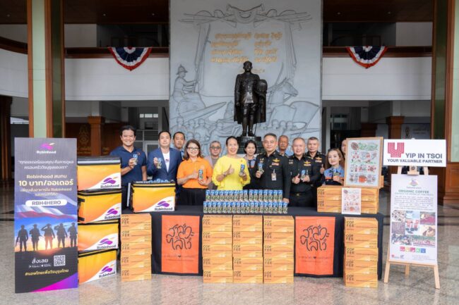 ทางบริษัท ยิบอินซอย จำกัด โดย คุณมรกต ยิบอินซอย กรรมการผู้จัดการใหญ่และประธานเจ้าหน้าที่บริหาร คุณแววรัตน์ ชำนาญภักดี ผู้อำนวยการสายงานทรัพยากรบุคคลและสื่อสารองค์กร บริษัท ยิบอินซอย จำกัด พร้อมทั้งผู้บริหาร Robinhood คุณพงศ์ปณต อิงคสิทธิ์ ประธานเจ้าหน้าที่บริหารฝ่ายธุรกิจ Chief Commercial Officer (CCO) มอบกาแฟกระป๋องพร้อมดื่ม “กาแฟรักษ์ป่า” สาละวะไล่โว่