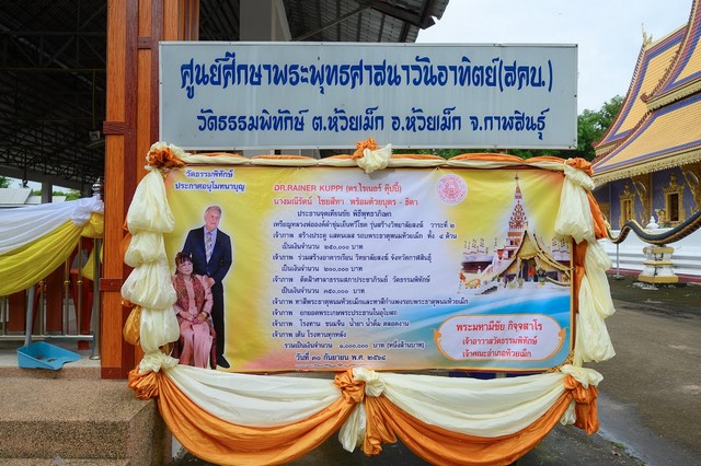 ในโอกาสนี้ ดร.ไรเนอร์ คุ๊ปปี้ และนางมณีรัตน์ ไชยสีหา ชาวบ้านคำมะโฮ ต.คำเหมือดแก้ว อ.ห้วยเม็ก ยังได้ร่วมเป็นเจ้าภาพร่วมทำบุญ โดยบริจาคทุนทรัพย์สร้างประตูสแตนเลส รอบพระธาตุพนมห้วยเม็กทั้ง 4 ด้าน จำนวน 250,000 บาท, ร่วมสร้างอาคารเรียนวิทยาลัยสงฆ์ จ.กาฬสินธุ์ จำนวน 200,000 บาท, เจ้าภาพติดฝ้าศาลาธรรมสภาประชาภิรมย์ วัดธรรมพิทักษ์ จำนวน 350,000 บาท, เจ้าภาพทาสีพระธาตุพนมห้วยเม็ก-ทาสีกำแพงรอบพระธาตุพนมห้วยเม็ก และเจ้าภาพยกยอดพระเกศพระประธานในอุโบสถ รวมเป็นเงินจำนวน 1,000,000 บาท