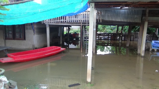 อ่างทอง-ชาวบ้านโพงเพงหวั่นเร่งขนของหาเรือ หลังกระสอบทรายกั้นน้ำพังรอบ 4 นายอำเภอพร้อมทหารประชาชนอุดจนอยู่