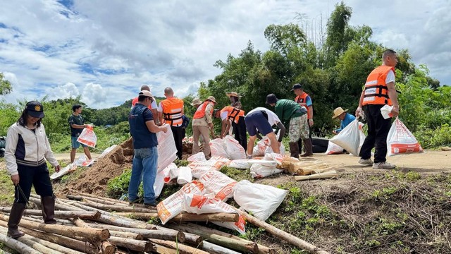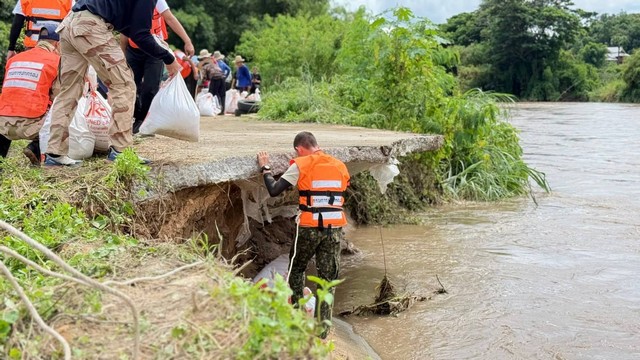 ลำพูน – บก.อส.จ.ลำพูน ปฏิบัติภารกิจซ่อมแซมตลิ่งเลียบน้ำทา เนื่องจากน้ำเซาะตลิ่ง