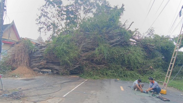 ยโสธร ต้นไทรยักษ์อายุเกือบ 100 ปีล้มขวางถนน