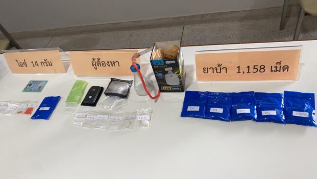 จากการเข้าตรวจสอบ ได้จับกุม นายธนวัฒน์ ธวัดดำ อายุ 31 ปี อยู่บ้านเลขที่ 53 ม.6 ตำบลปากคลอง อำเภอปะทิว จังหวัดชุมพร ได้พร้อมด้วยของกลาง 1.ยาเสพติดประเภท1 เมทแอมเฟตามีน(ยาบ้า) รวม 1,158 เม็ด 2.ยาเสพติดประเภท 1 เมทแอมเฟตามีน(ยาไอซ์) รวม 14 กรัม 3.โทรศัพท์มือถือ จำนวน 1 เครื่อง