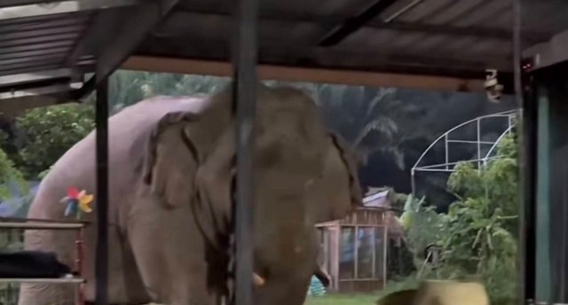 นครนายก คลิปช้างป่าพลายสาริกาหิวแวะร้านขายอาหารตามสั่ง ไม่ทำร้ายใคร ชุดผลักดันไล่เข้าป่า