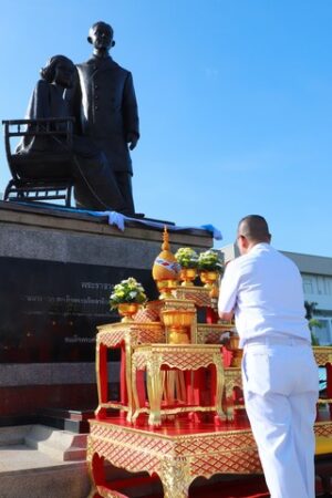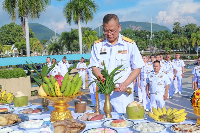 โดยประกอบพิธีสักการะ องค์พระพุทธชินราชจำลอง พระยูไลไภสัชยคุรุพุทธเจ้า พระตำหนัก พลเรือเอก พระเจ้าบรมวงศ์เธอ พระองค์เจ้าอาภากรเกียรติวงศ์ กรมหลวงชุมพรเขตอุดมศักดิ์ พระราชานุสาวรีย์ จอมพลเรือสมเด็จพระมหิตลาธิเบศร อดุลยเดชวิกรม พระบรมราชชนก และสมเด็จพระศรีนครินทราบรมราชชนนี และบวงสรวง พระภูมิเจ้าที่ใน พื้นที่โรงพยาบาลสมเด็จพระนางเจ้าสิริกิติ์ฯ อ.สัตหีบ จ.ชลบุรี