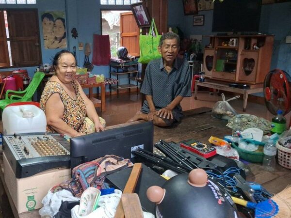 นางจำปี เขียวฤทธิ์ อายุ68ปี ชาวบ้านหมู่7 ต.ท่าทอง อ.สวรรคโลก เล่าว่าปีนี้น้ำในแม่น้ำยมได้เอ่อล้นคันตะลิงอย่างรวดเร็ว จากจำนวนน้ำที่ขึ้นสูงและมีปริมาณมากจากฝนและพายุทางภาคเหนือ กัดเซาะคันดินริมถนนเลียบแม่น้ำยมซึ่งกำลังก่อสร้างผิวถนนใหม่ น้ำได้ไหลล้นและทะลายคันดินและคันถนนขาดไหลเข้าท่วมบ้านซึ่งอยู่ในสวนละมุดทำให้บ้าาของตนและชาวบ้านระแวกนี้รวมทั้งพื้นที่ใกล้เคียงต้องประสบภัยหลายครัวเรือน และต้องอาศัยอยู่แต่ในบ้านไม่สามารถออกไปด้านนอกได้เนื่องจากกระแสน้ำที่ไหลเข้าท่วมไหลแรงเกรงว่าจะเกิดอันตราย