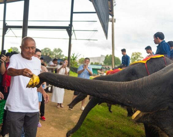 สวนนงนุชพัทยาจัดพิธีรับขวัญลูกช้าง “พลายจอมทอง” เชื่อมสายใยแห่งความผูกพันกับ “น้องข้าวต้ม” ลูกช้างป่าพลัดหลง