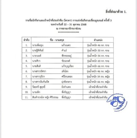 วันที่ 6 ตุลาคม 2568 องค์การบริหารส่วนจังหวัดพิษณุโลก โดยการนำของ นายมนต์ชัย วิวัฒน์ธนาฒย์ นายกองค์การบริหารส่วนจังหวัดพิษณุโลก ขอแสดงความยินดีกับนักกีฬามวยสากลและนักกีฬามวยไทยของโรงเรียนกีฬาองค์การบริหารส่วนจังหวัดพิษณุโลก ได้รับคัดเลือกจากสมาคมกีฬามวยสากลแห่งประเทศไทย เป็นตัวแทนเยาวชนทีมชาติไทยเข้าร่วมการแข่งขันกีฬาเอเชียนยูธเกมส์ ครั้งที่ 3 รายการ The 3rd Asian Youth Games – Bahrain 2025 ระหว่างวันที่ 22 – 31 ตุลาคม 2568 ณ ราชอาณาจักรบาห์เรน ประกอบด้วย
