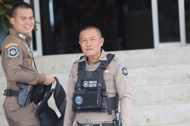 พ.ต.ท.กล้า สมบัติพิบูลย์ สืบเนื่องจากในช่วงที่ผ่านมาเจ้าหน้าที่ตำรวจทางหลวงจังหวัดชุมพรก็มีการจับกุมอาชญากรรมคดีสำคัญไม่ว่าจะเป็นการจับกุมการลักลอบผลยาเสพติดล็อตใหญ่หรือผู้ต้องหาก่อเหตุคดีอุกฉกรรจ์ ก่อเหตุคดีฆ่าปล้นแล้วก็ใช้ถนนหลวงเป็นเส้นทางหลบหนีแล้วก็มีการสกัดจับในช่วงที่ผ่านมาเล็งเห็นว่าการจับกุมในพื้นที่ การปฏิบัติหน้าที่ของเจ้าหน้าที่ตำรวจทางหลวงมีความสุ่มเสี่ยงจะต้องเจออาชญากรรมรุนแรงประกอบกับเจ้าหน้าที่หลายหลายคนยังไม่มีชุดเกาะในการปฏิบัติหน้าที่เป็นของประจำตัว จึงเล็งเห็น ถึงความปลอดภัยของลูกน้องก็เลยนำมาเป็นการจัดซื้อเสื้อเกาะกันกระสุนให้กับผู้ผู้ปฏิบัติได้มีใช้ใส่ซึ่งเสื้อเกาะในวันนี้