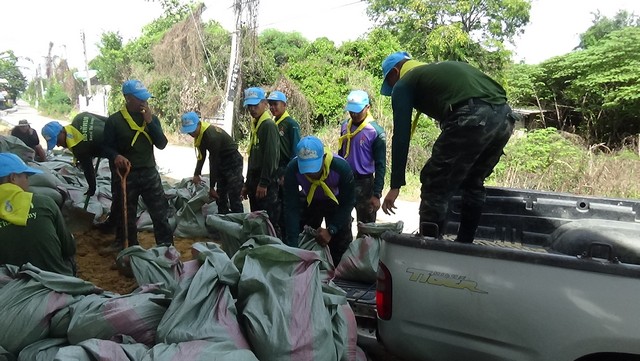 อ่างทอง-อำเภอไชโย สนธิกำลังทหารลพบุรีสร้างแนวป้องกันน้ำเจ้าพระยาไหลเข้าท่วมบ้านเรือนประชาชน