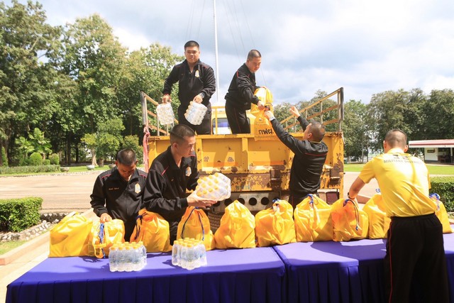 ในคราวเดียวกันนี้ ผู้บัญชาการมณฑลทหารบกที่ 32 นำคณะผู้บังคับบัญชา รับมอบถุงยังชีพจำนวน 200 ชุด, น้ำดื่มจำนวน 200 แพ็ค (2,400 ขวด) เพื่อส่งต่อความห่วงใยแก่ประชาชนในพื้นที่จังหวัดลำปาง ที่ประสบภัยพิบัติและผู้ที่ได้รับความเดือนร้อนต่างๆ โดยผ่านภารกิจของศูนย์บรรเทาสาธารณภัยมณฑลทหารบกที่ 32 และหน่วยทหารในพื้นที่ อันเป็นการแสดงออกถึงความห่วงใย และความมุ่งมั่นที่จะร่วมกันดูแลพี่น้องประชาชนให้มีความสุขและมีคุณภาพชีวิตที่ดีขึ้น ตลอดทั้งยังจะช่วยแบ่งเบาภาระค่าใช้จ่าย สร้างขวัญกำลังใจในการดำเนินชีวิต และขอให้มั่นใจว่าทุกภาคส่วน และหน่วยงานทหาร พร้อมที่จะอยู่เคียงข้างพี่น้องประชาชนในทุกโอกาส