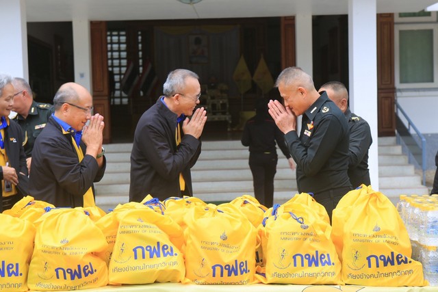 ลำปาง-ผบ.มทบ.32 ต้อนรับผู้บริหาร กฟผ.แม่เมาะ มอบถุงยังชีพช่วยชาวลำปาง