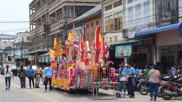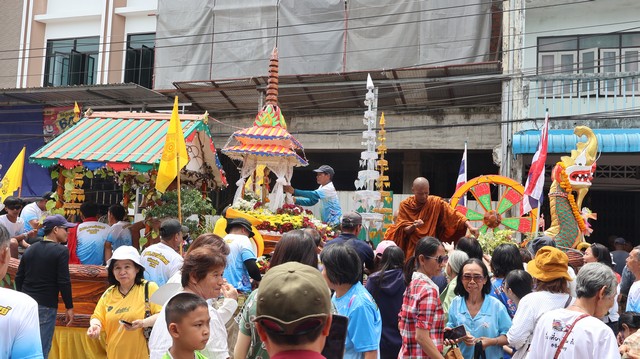 วันที่ 8 ต.ค.68 พุทธศาสนิกชน ต่างออกมาร่วมชักลากเรือพระ จากวัดต่างๆ ในพื้นที่ อ.เบตง จ.ยะลา ไปตามถนนสายต่างๆรอบเขตเทศบาลเมืองเบตง กันอย่างสนุกสนาน เมื่อเรือพระผ่านบริเวณใด ก็จะมีเสียงตีโพน เสียงกลอง ฆ้อง ระฆัง ดังเป็นจังหวะ ประชาชน ตามสองข้างทางที่ได้ยินเสียง ก็จะออกมาร่วมชักลากเรือพระ จึงทำให้ตามท้องถนน ในย่านเศรษฐกิจ ย่านการค้า ในเขตเทศบาลเมืองเบตงคึกคัก แต่หากเทียบกับปีที่ผ่านมา ปีนี้ประชาชนออกมาร่วมน้อยกว่ามาก ซึ่งเรือพระทุกลำ จะไปจอดที่บริเวณหน้าตลาดสดเทศบาลเมืองเบตง เพื่อให้พี่น้องประชาชน ร่วมทำบุญ แขวนต้ม ที่บริเวณหน้าเรือพระ