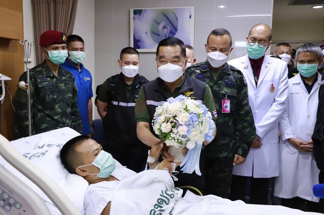 ในการนี้ พลเอก ณัฐพล นาควานิช รัฐมนตรีว่าการกระทรวงกลาโหม พร้อมด้วย พลโท นรธิป โพยนอก แม่ทัพภาคที่ 4 / ผู้อำนวยการรักษาความมั่นคงภายในภาค 4 ได้พูดคุยให้กำลังใจ พร้อมมอบกระเช้าเยี่ยมในนามของนายกรัฐมนตรี เพื่อเป็นขวัญและกำลังใจแก่ผู้ได้รับบาดเจ็บ