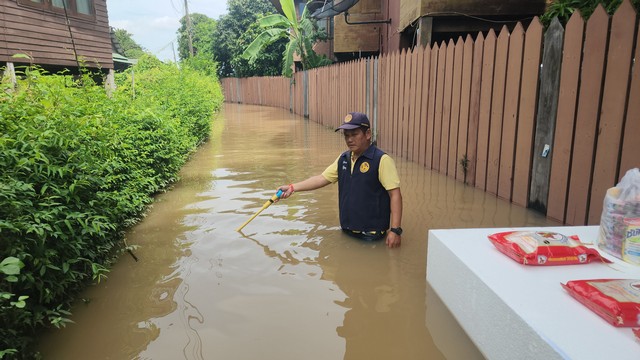 โดย พล.ต.ท.คำรณวิทย์ ธูปกระจ่าง นายก อบจ.ปทุมธานี กล่าวว่า เนื่องจากสถานการณ์น้ำเอ่อล้นริมแม่น้ำเจ้าพระยาจะเข้าท่วมขังบริเวณที่อยู่อาศัยและบ้านเรือนของประชาชนที่อยู่นอกคันกั้นน้ำ เราจึงได้มอบแพโฟมให้ เพื่อให้สามารถขนย้ายสิ่งของได้ แม้แต่ตู้เย็นก็สามารถวางได้ รถจักรยานยนต์ก็สามารถนำมาไว้บนโฟมเพื่อให้ลอยขึ้น ซึ่งพี่น้องประชาชนได้ร้องขอมาเยอะจึงรีบดำเนินการ รวมถึงได้ประสานงานกับเทศบาลท้องถิ่นที่อยู่ริมแม่น้ำ ให้รีบมารับเพื่อนำไปมอบให้พี่น้องประชาชนที่เดือดร้อน เพราะว่าเราเห็นว่าแพโฟมมีประโยชน์ต่อพี่น้องประชาชนจริง ๆ พร้อมทั้ง จัดหาเครื่องตรวจ ไฟรั่ว จากทางสถาบันเทคโนโลยีพระจอมเกล้าเจ้าคุณทหารลาดกระบัง เพื่อแจกจายให้กับ อปท. และ ประชาชนที่ถูกน้ำท่วม
