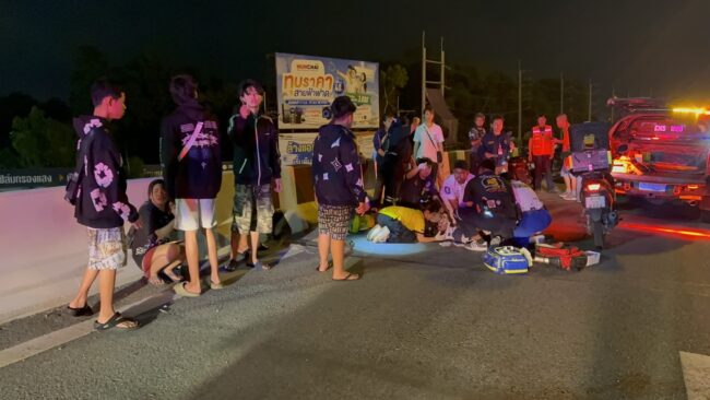 ชลบุรี-นร.ม.ปลายขี่ จยย.เสียหลักลื่นชนราวสะพานมอเตอร์เวย์ สาหัส