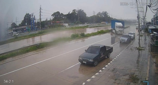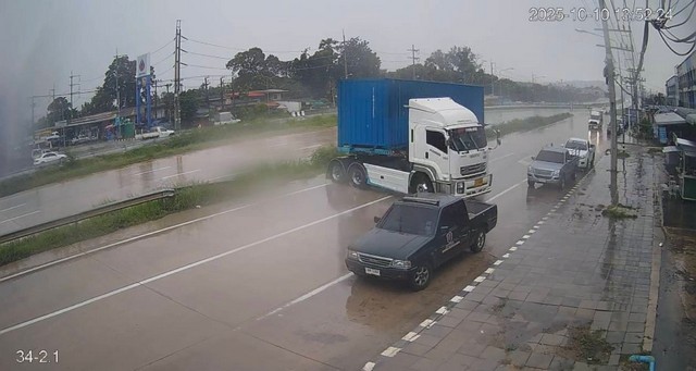 ชลบุรี-ฝนตกถนนลื่น เทรลเลอร์ 18 ล้อ เสียหลักพุ่งชนกระบะคนในรถหนีตายวุ่น