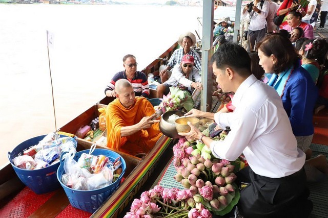 ปทุมธานี สืบสานประเพณีตักบาตรพระร้อยร่วมใจถวายบัว ทางเรือ ณ วัดหงษ์ปทุมาวาส อำเภอเมืองปทุมธานี