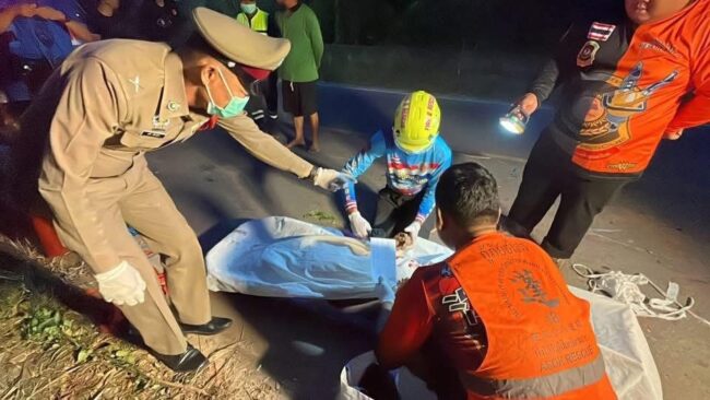 ร้อยเอ็ด…ชะตาขาด…หนุ่มควบจยย.พลาด ชนคอสะพาน กระเด็นตกลงไปใต้สะพานดับ