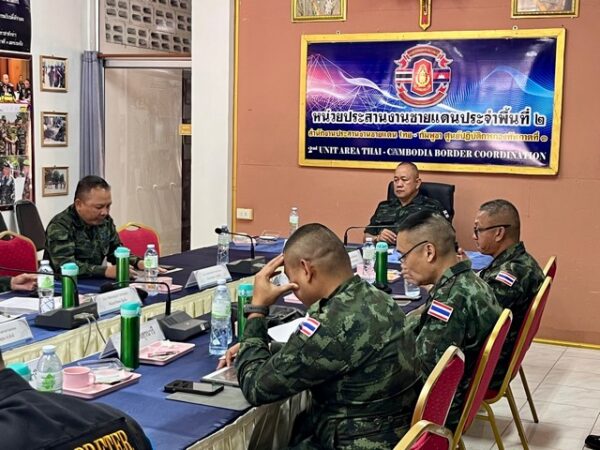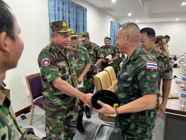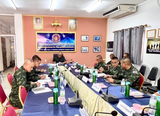 (สุรินทร์) ประชุมกองบัญชาการภูมิภาคกัมพูชา-ไทย (RBC) กองทัพภาคที่ 2 ทหารภูมิภาคที่ 4 ครั้งที่ 2 ของไทยและกัมพูชา โดยเบื้องต้นฝ่ายกัมพูชายอมร่วมกู้ทุ่นระเบิดและถอยอาวุธหนัก