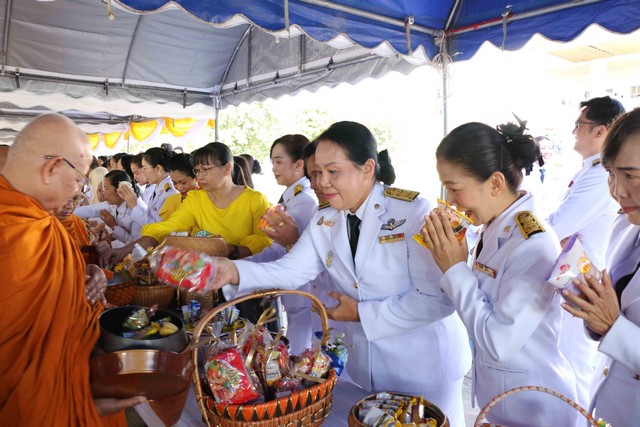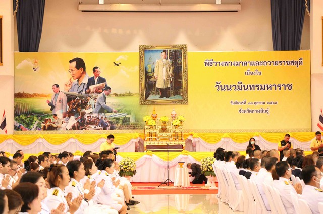 คณะสงฆ์ ส่วนราชการ และประชาชน พร้อมใจกันประกอบพิธีสวดพระพุทธมนต์ และทำบุญตักบาตร ถวายเป็นพระราชกุศลแด่พระบาทสมเด็จพระบรมชนกาธิเบศร มหาภูมิพลอดุลยเดชมหาราช บรมนาถบพิตร  เนื่องในวันนวมินทรมหาราช 13 ตุลาคม 2568