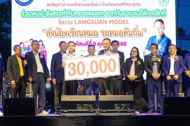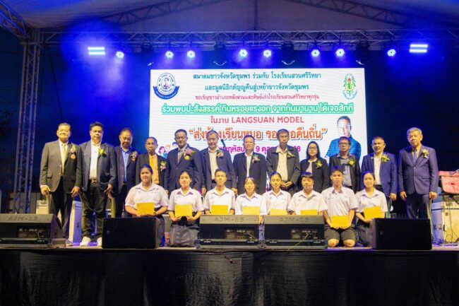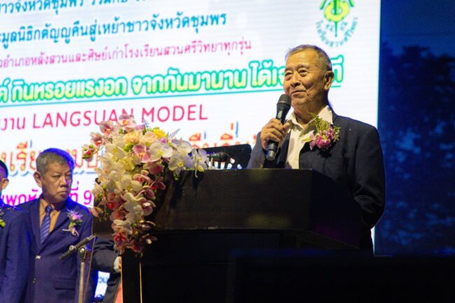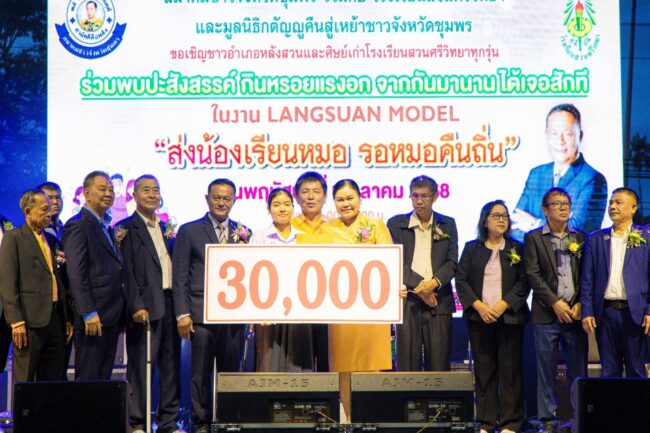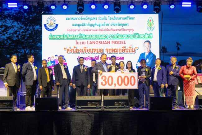 เมื่อวันพฤหัสบดีที่ 9 ตุลาคม 2568 มูลนิธิกตัญญูคืนสู่เหย้าชาวจังหวัดชุมพร ได้จัดพิธีมอบทุนการศึกษา โครงการสนับสนุนการศึกษา 1 อำเภอ 1 ทุน มูลนิธิกตัญญูคืนสู่เหย้าชาวจังหวัดชุมพร รวม 8 อำเภอ ทุนละ 30,000 บาท ต่อคน/ต่อปี รวมเงินที่มอบ จำนวน 240,000 บาท จัด ณ บ้านเลขที่ 86/8 หมู่ที่ 12 ตำบลแหลมทราย อำเภอหลังสวน จังหสัดชุมพร โดยได้จัดงานร่วมกับ สมาคมชาวจังหวัดชุมพร และโรงเรียนสวนศรีวิทยา ใช้ชื่องานว่า LANGSUAN MODEL “ส่งน้องเรียนหมอ รอหมอคืนถิ่น”