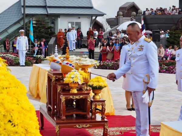 โดยประธานในพิธีได้นำคณะผู้ร่วมพิธีถวายความเคารพเบื้องหน้าพระบรมฉายาลักษณ์ และวางพวงมาลาเพื่อถวายราชสักการะ พระบาทสมเด็จพระบรมชนกาธิเบศร มหาภูมิพลอดุลยเดชมหาราช บรมนาถบพิตร จากนั้นได้กล่าวคำน้อมรำลึกในพระมหากรุณาธิคุณ