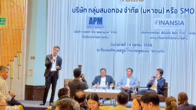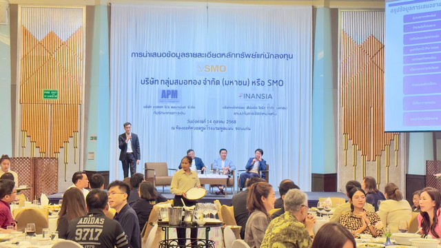 เมื่อเวลา 18.30 น. วันที่ 14 ตุลาคม 2568 ที่ โรงแรมพูลแมน ขอนแก่น ราชา ออคิด บริษัท กลุ่มสมอทอง จำกัด (มหาชน) หรือ SMO ร่วมกับ บริษัท แอสเซท โปร แมเนจเม้นท์ จำกัด (APM) ที่ปรึกษาทางการเงิน และ บริษัทหลักทรัพย์ ฟินันเซีย ไซรัส จำกัด (มหาชน) (FSS) ในฐานะแกนนำผู้จัดการการจำหน่ายและรับประกันการจำหน่ายหุ้น IPO จัดกิจกรรม โรดโชว์นำเสนอข้อมูลแก่ผู้ลงทุนในจังหวัดขอนแก่น ซึ่งเป็นหนึ่งใน 11 จังหวัดทั่วประเทศ เพื่อแนะนำศักยภาพธุรกิจและแผนการระดมทุนเสนอขายหุ้น IPO จำนวน 231.60 ล้านหุ้น