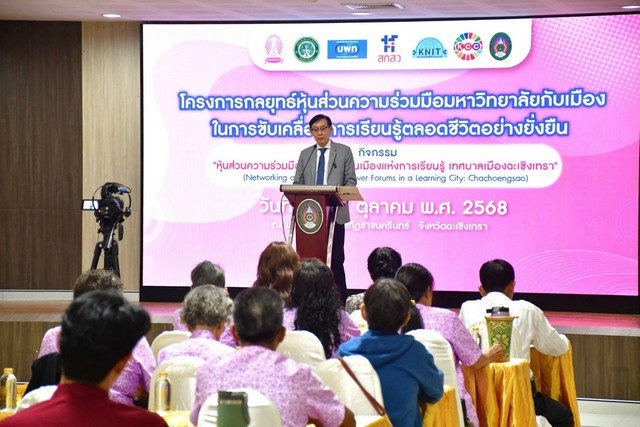 วันที่ 16 ตุลาคม 2568 นายกลยุทธ ฉายแสง นายกองค์การบริหารส่วนจังหวัดฉะเชิงเทรา กล่าวปาฐกถาพิเศษในหัวข้อ “เมืองแห่งการเรียนรู้ : เมืองสวยงามน่าอยู่ ก้าวสู่สังคมแห่งการเรียนรู้คู่คุณธรรม” ตามโครงการกลยุทธ์หุ้นส่วนความร่วมมือมหาวิทยาลัยกับเมืองในการขับเคลื่อนการเรียนรู้ตลอดชีวิตอย่างยั่งยืน กับกิจกรรม “หุ้นส่วนความร่วมมือการขับเคลื่อนเมืองแห่งการเรียนรู้ เทศบาลเมืองฉะเชิงเทรา”