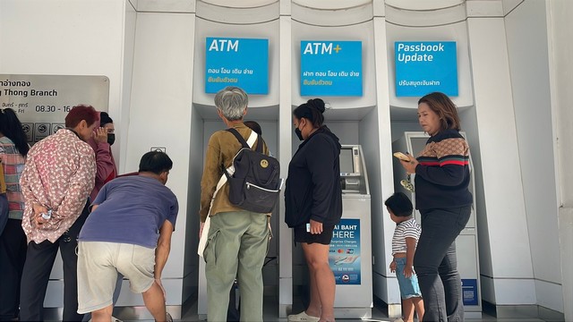14.30 น. ผู้ประกอบการร้านค้าที่เข้าร่วมโครงการคนละครึ่งพลัส มาติดต่อขอใช้บริการที่ธนาคารกรุงไทย สาขาอ่างทอง ตั้งแต่ช่วงสายวันนี้ จนถึงปัจจุบัน ทำให้ท้ายแถวล้นออกมานอกตัวอาคารสำนักงานธนาคารกรุงไทย สาขาอ่างทอง