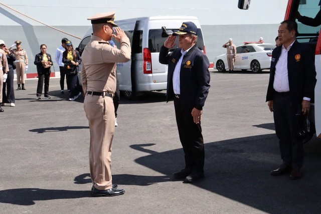 วันศุกร์ที่ 17 ตุลาคม 2568 เวลา 10:00 – 12.00 นาฬิกา พลเอก สวัสดิ์ ทัศนา ประธานคณะกรรมาธิการการทหารและความมั่นคงของรัฐ พร้อมด้วยคณะกรรมาธิการ ที่ปรึกษากิตติมศักดิ์คณะกรรมาธิการ นักวิชาการประจำคณะกรรมาธิการ และคณะอนุกรรมาธิการด้านกิจการทหาร ได้เดินทางลงพื้นที่ศึกษาดูงานเพื่อเยี่ยมชมเรือหมู่เรือฝึกนักเรียนนายเรือสาธารณรัฐประชาชนจีน ณ ท่าเรือจุกเสม็ด ฐานทัพเรือสัตหีบ อำเภอสัตหีบ จังหวัดชลบุรี