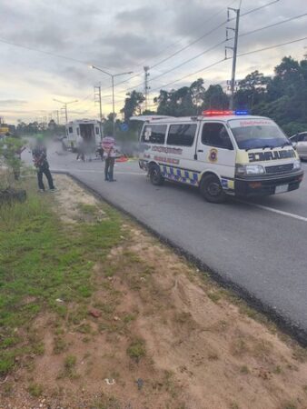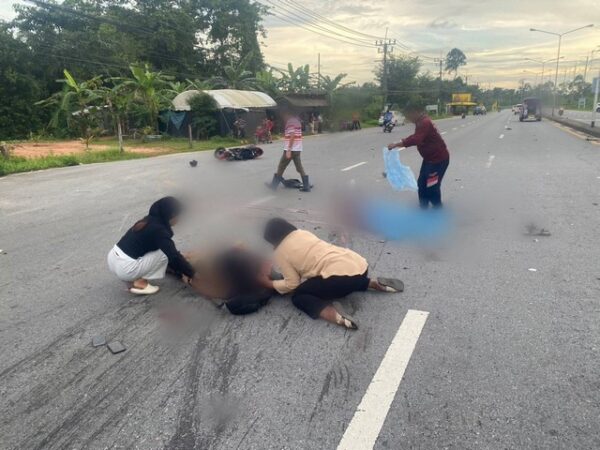 พังงา-เศร้า!! 2 สามีภรรยาชาวต่างชาติขับรถมอเตอร์ไซด์ย้อนศรชนรถกระบะจนเป็นเหตุให้ภรรยาเสียชีวิตคาที่ส่วนสามีบาดเจ็บสาหัส เจ้าหน้าที่เร่งช่วยเหลือ