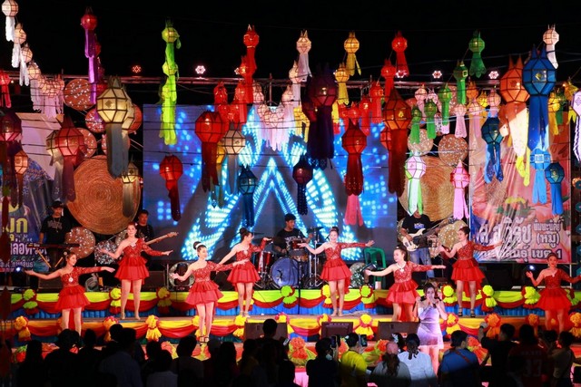 องค์การบริหารส่วนตำบลหนองแวง อำเภอสมเด็จ จังหวัดกาฬสินธุ์ พร้อมจัดงานสืบสานประเพณี “ลอยกระทงโคมธุง นุ่งผ้าไทย ใส่ผ้าท้องถิ่น เอกลักษณ์ไทย” ผสมผสาน 2 วัฒนธรรมอีสาน-ล้านนา สุดยิ่งใหญ่อลังการ โดยการนำธุงอีสานประดับประดาสถานที่จัดงานผสมผสานกับโคมล้านนากว่า 1 หมื่นชิ้นสวยงามตระการตา พร้อมสนุกสนานกับรำวงชาวบ้าน เวทีแสง สี เสียง การแสดงของเจ้าหน้าที่ กลุ่มแม่บ้าน ปะทะศิลปินดัง “ใหม่ พัชรี”