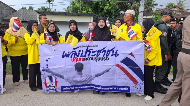 นราธิวาส-รวมใจกันต่อต้านความรุนแรง “กองภาคประชาสังคม ศูนย์สันติวิธี กอ.รมน.ภาค4ส่วนหน้า พร้อมให้กำลังใจกับคนในพื้นที่