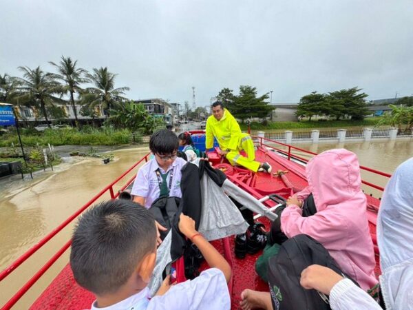 เนื่องจากกำลังสั่งการเจ้าหน้าที่เทศบาลเร่งดำเนินการติดตั้งเครื่องสูบน้ำเพื่อระบายน้ำท่วมขัง ได้เร่งนำรถดับเพลิงเข้าไปรับนักเรียนที่อยู่ในรถรับส่งนักเรียนที่จอดเสีย จำนวน กว่า 10 คน ก่อนจะนำไปส่งยังบริเวณพื้นที่ปลอดภัยจากน้ำท่วม ก่อนประสานกับทางโรงเรียนขจรเกียรติเพื่อเปลี่ยนรถคนใหม่มารับ