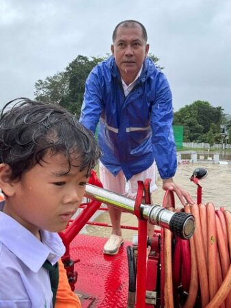 เนื่องจากกำลังสั่งการเจ้าหน้าที่เทศบาลเร่งดำเนินการติดตั้งเครื่องสูบน้ำเพื่อระบายน้ำท่วมขัง ได้เร่งนำรถดับเพลิงเข้าไปรับนักเรียนที่อยู่ในรถรับส่งนักเรียนที่จอดเสีย จำนวน กว่า 10 คน ก่อนจะนำไปส่งยังบริเวณพื้นที่ปลอดภัยจากน้ำท่วม ก่อนประสานกับทางโรงเรียนขจรเกียรติเพื่อเปลี่ยนรถคนใหม่มารับ