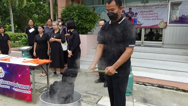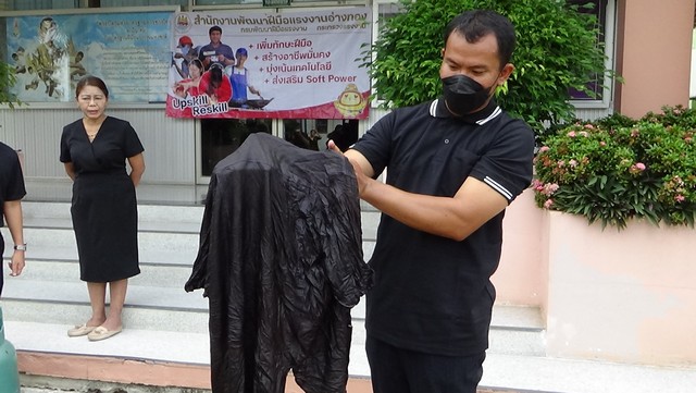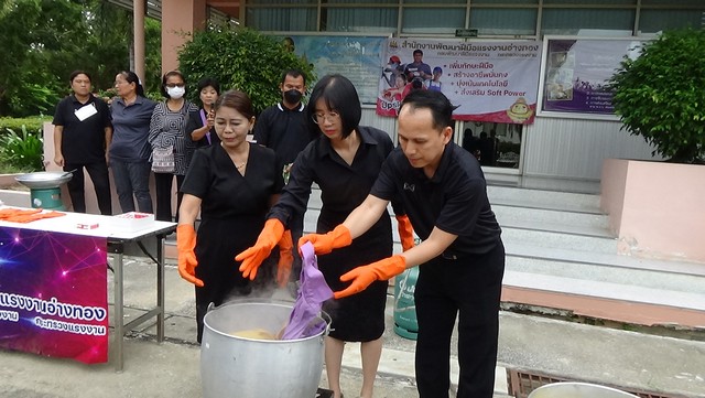 อ่างทอง สำนักงานพัฒนาฝีมือแรงงานอ่างทอง จัดกิจกรรมย้อมผ้าสีดำฟรีแก่ประชาชน