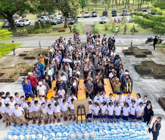 รวมถึงคณะครู นักเรียนจากโรงเรียนบ้านคลองมะนาว และโรงเรียนบ้านตาหนึก กว่า 300 คน ร่วมเดินทางมารอรับสิ่งของบริจาค และร่วมแสดงความอาลัย แด่สมเด็จพระนางเจ้าสิริกิติ์ พระบรมราชินีนาถ พระบรมราชชนนีพันปีหลวง บรรยากาศเป็นไปด้วยความเรียบง่าย ก่อนเริ่มกิจกรรม ผู้เข้าร่วมงานได้ยืนสงบนิ่งเป็นเวลา 1 นาที เพื่อน้อมถวายความอาลัย และเพื่อแสดงความจงรักภักดี แด่สมเด็จพระนางเจ้าสิริกิติ์ พระบรมราชินีนาถ พระบรมราชชนนีพันปีหลวง พร้อมกันนี้ได้เดินทางไปที่ ชุดควบคุมทหารพรานนาวิกโยธินที่ 3 เพื่อมอบข้าวสารจำนวน 500 ถุง โดยมี น.อ. วีรยุทธ พันธ์ฉลาด หน.ชค.ทพ.นย.3 เป็นผู้รับมอบ